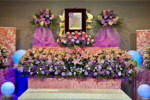 色とりどりので種類豊富なお花の数で、とても明るく鮮やかな祭壇となりました。